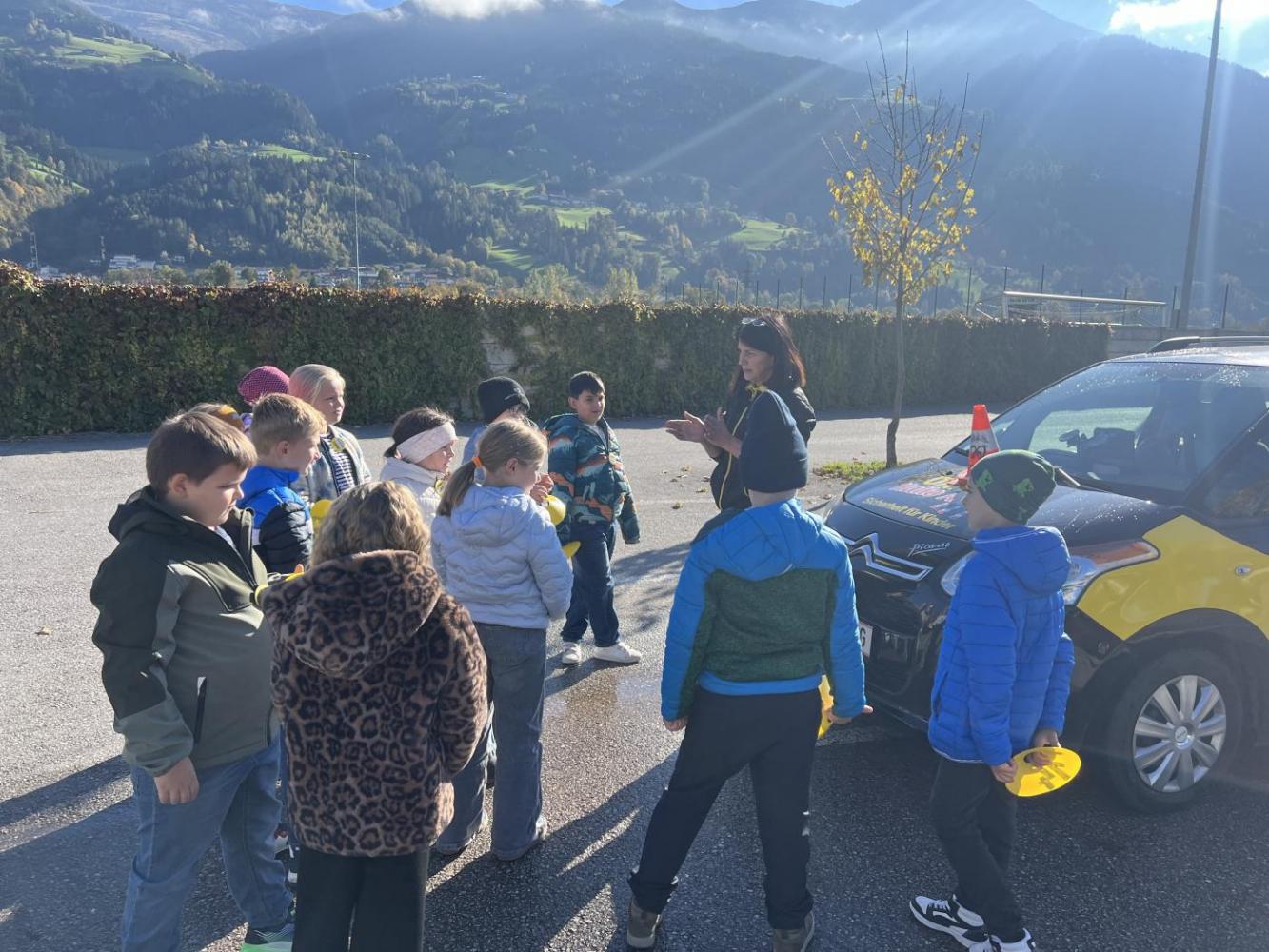 Die dritte Stufe der Mehrstufenklassen nahmen an der Aktion „Hallo Auto“ vom ÖAMTC teil. Dabei wurde den Kindern wieder bewusst wie wichtig es ist im Straßenverkehr achtsam zu sein. Die Kinder durften sogar selbst das Bremspedal betätigen und einen Bremstest durchführen.