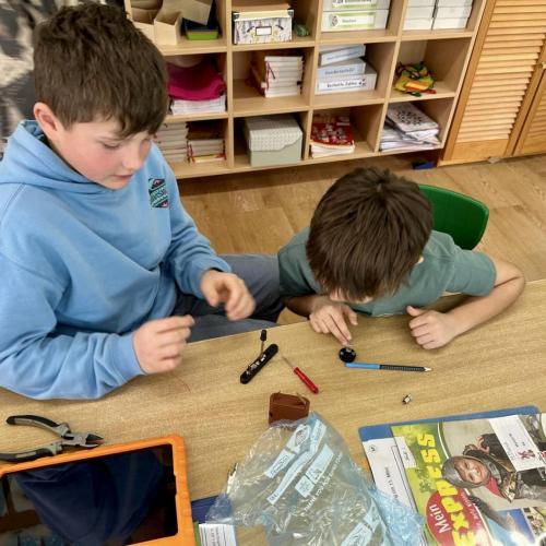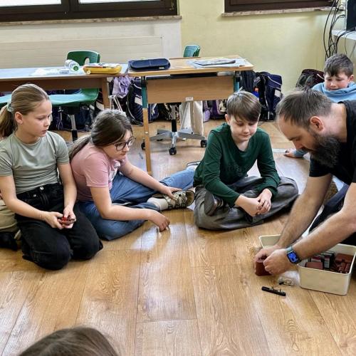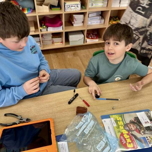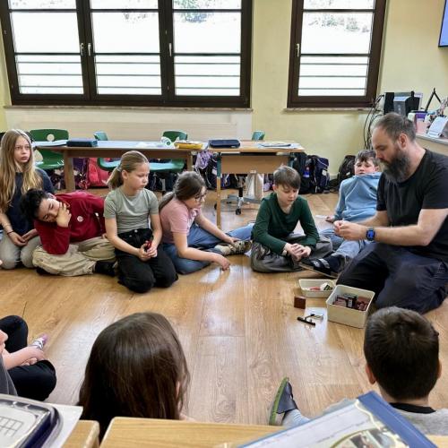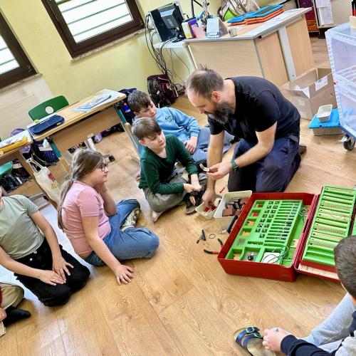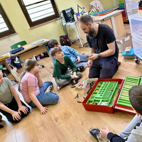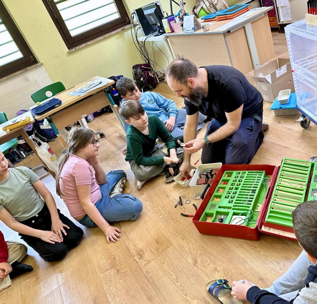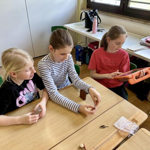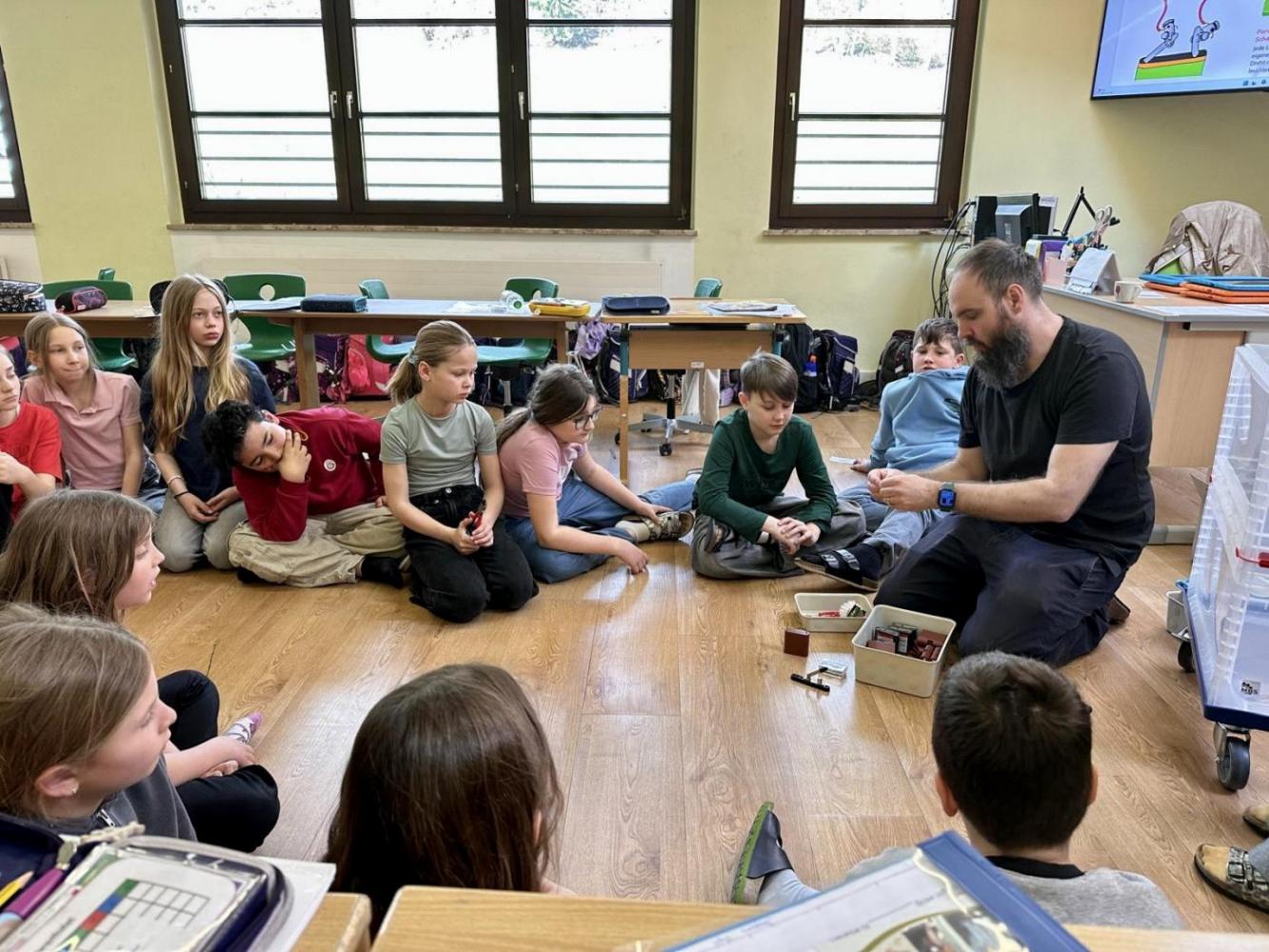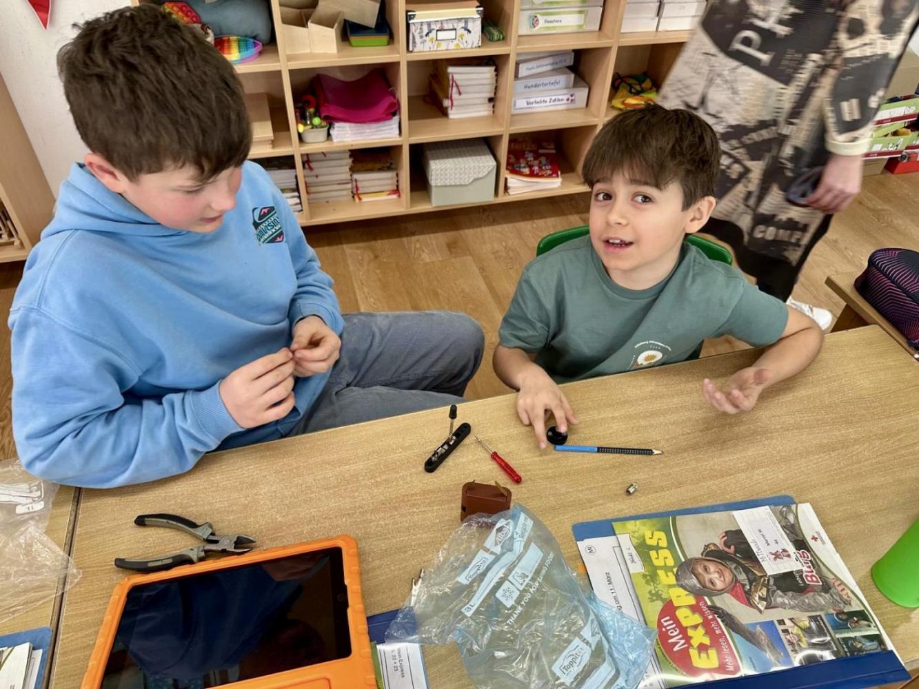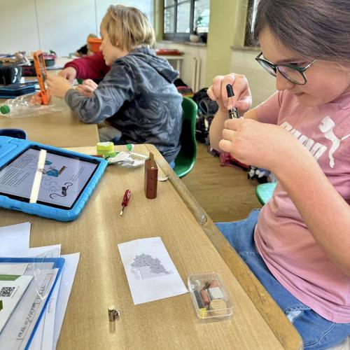 Mit dem Stromkreis‑Experimentierset haben die Kinder ausprobiert, welche Materialien Strom leiten können. Sie bauten einfache Stromkreise mit Reihen‑ und Parallelschaltungen. Danach durfte jedes Kind eine eigene Laufbürste mit dem Namen „Wirbelwind“ basteln. Zum Schluss wurden die Bürsten im Pausenhof getestet. Dabei entstand ein tolles gemeinsames Gruppenbild.
