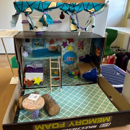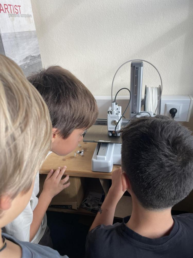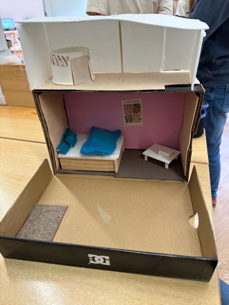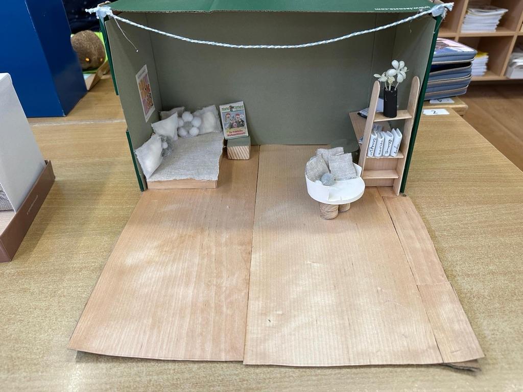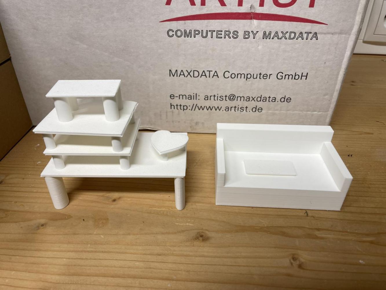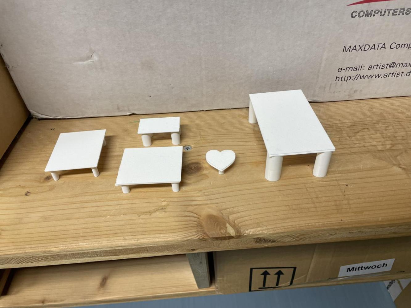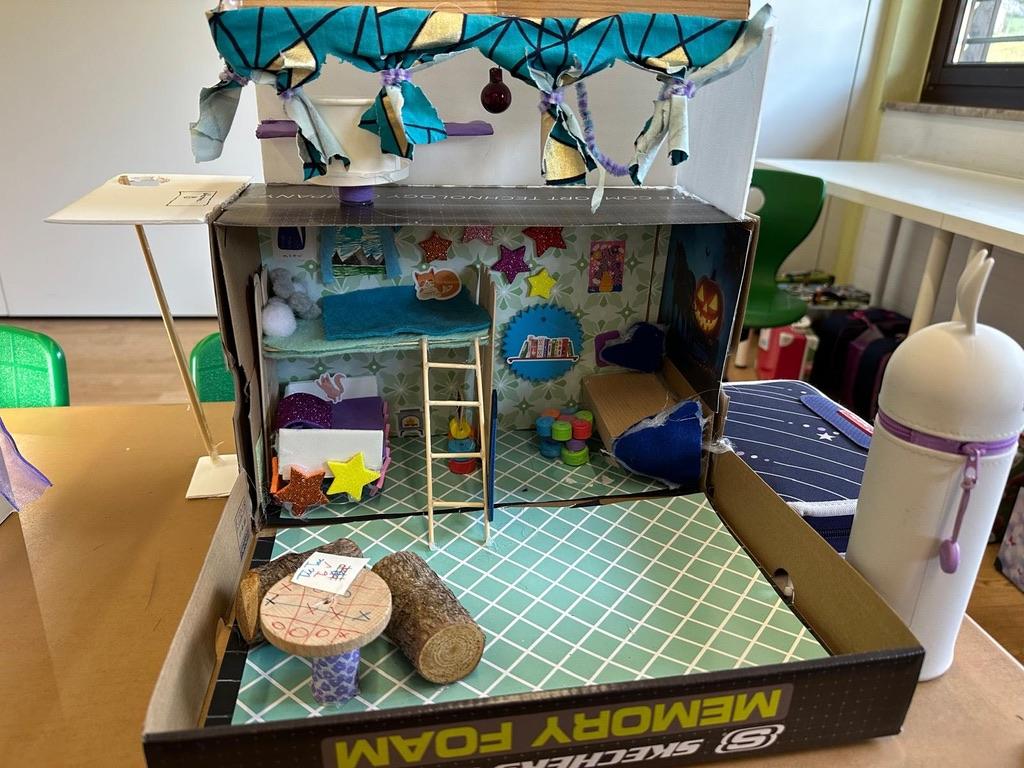 Die Kinder arbeiteten eifrig an ihren Ideen. Ihnen stand eine Menge unterschiedliche Materialien zur Verfügung. Verschiedenste Techniken wurden angewandt und kombiniert. Einige Kinder designten auch mit Tinkercad (Digitales Zeichenprogramm) Tische und diverse Einrichtungsgegenstände. Diese wurden dann mit dem 3D Drucker gedruckt.