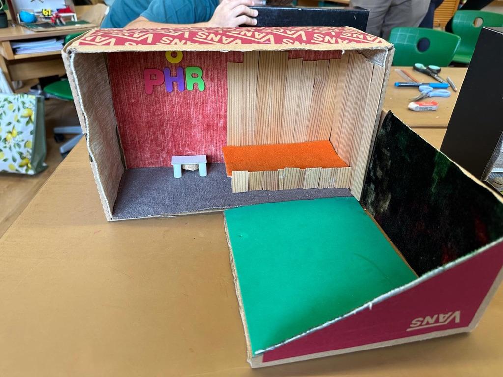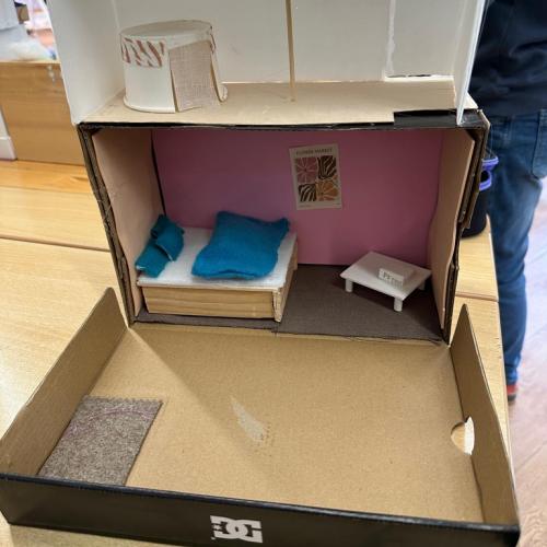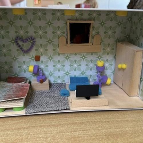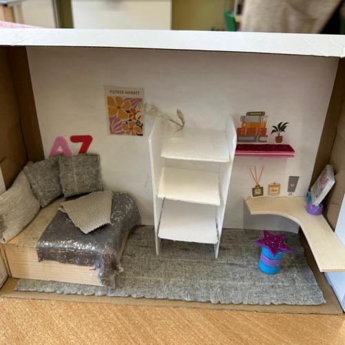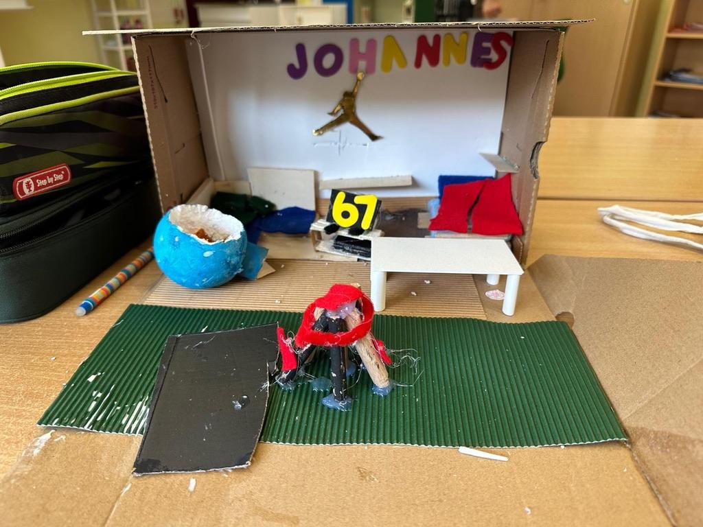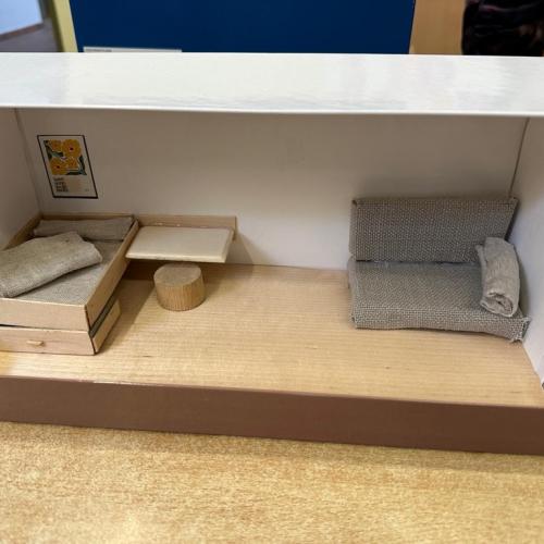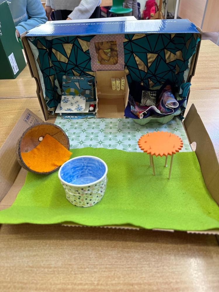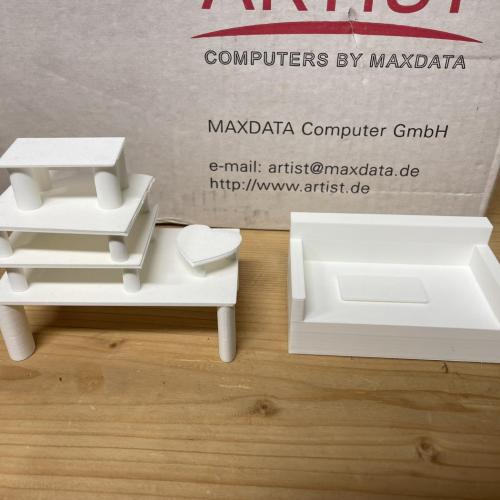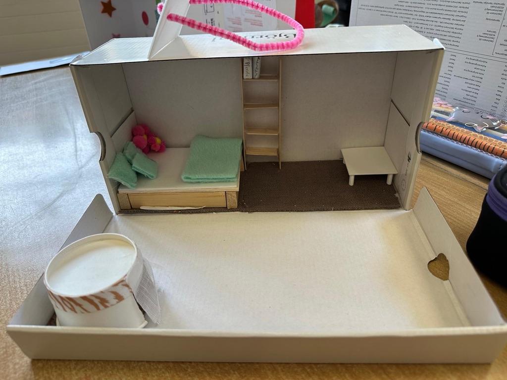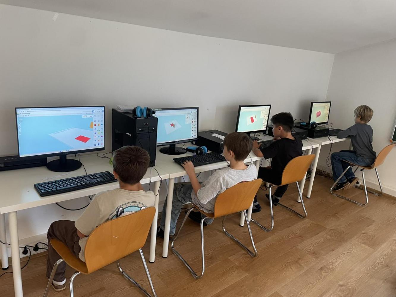 Die Kinder arbeiteten eifrig an ihren Ideen. Ihnen stand eine Menge unterschiedliche Materialien zur Verfügung. Verschiedenste Techniken wurden angewandt und kombiniert. Einige Kinder designten auch mit Tinkercad (Digitales Zeichenprogramm) Tische und diverse Einrichtungsgegenstände. Diese wurden dann mit dem 3D Drucker gedruckt.