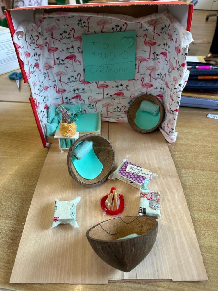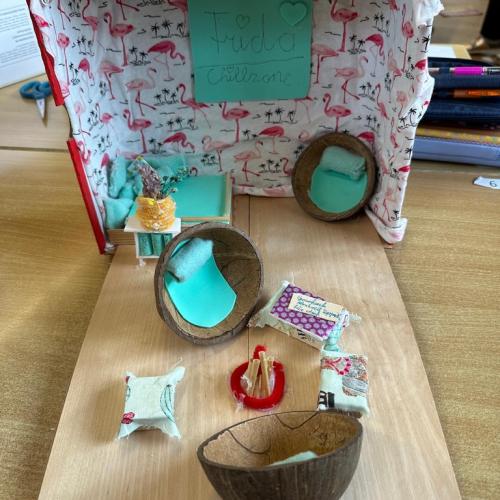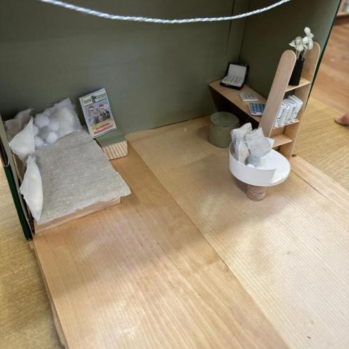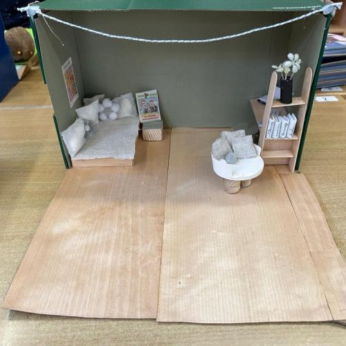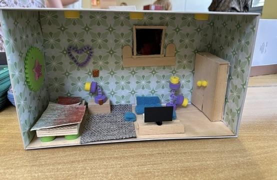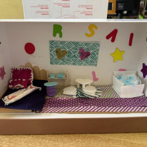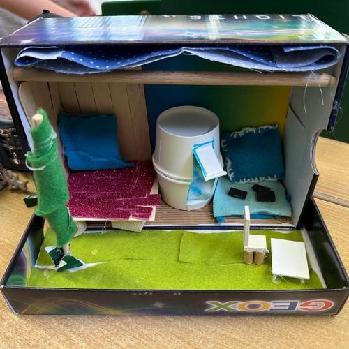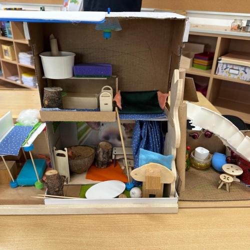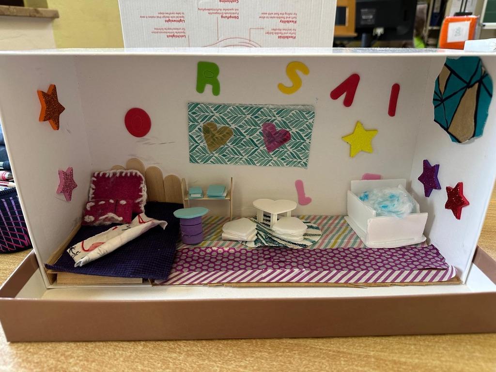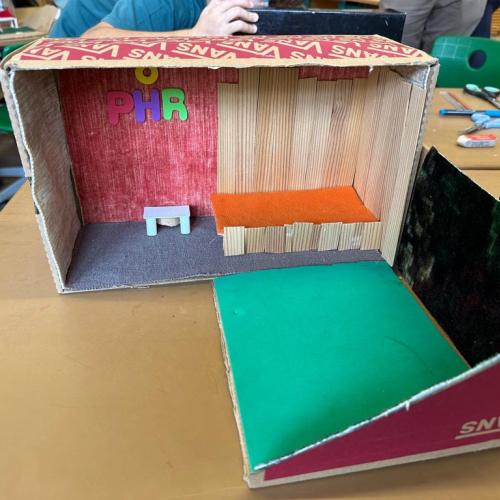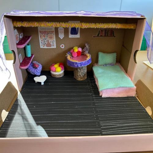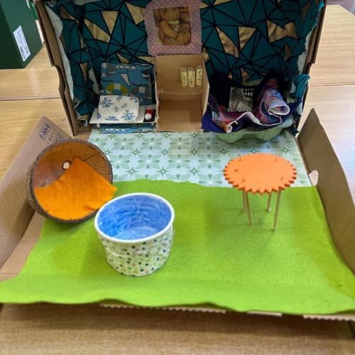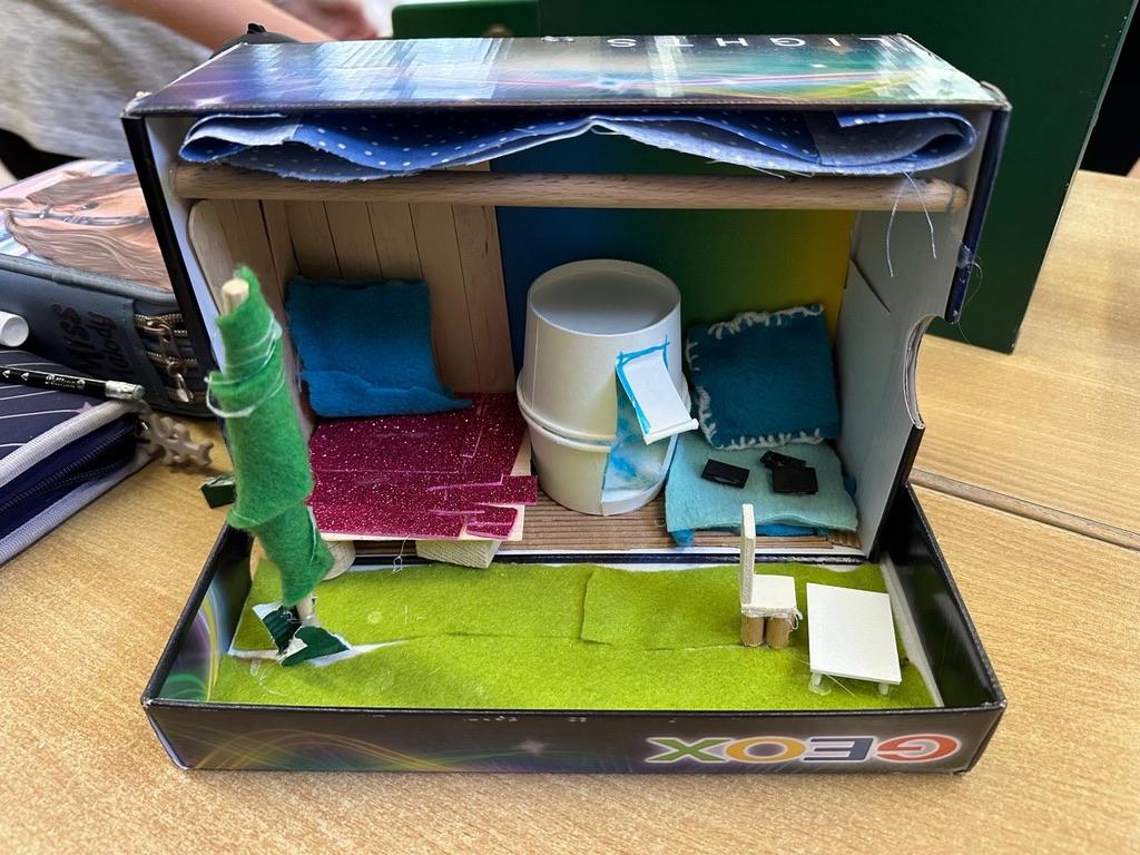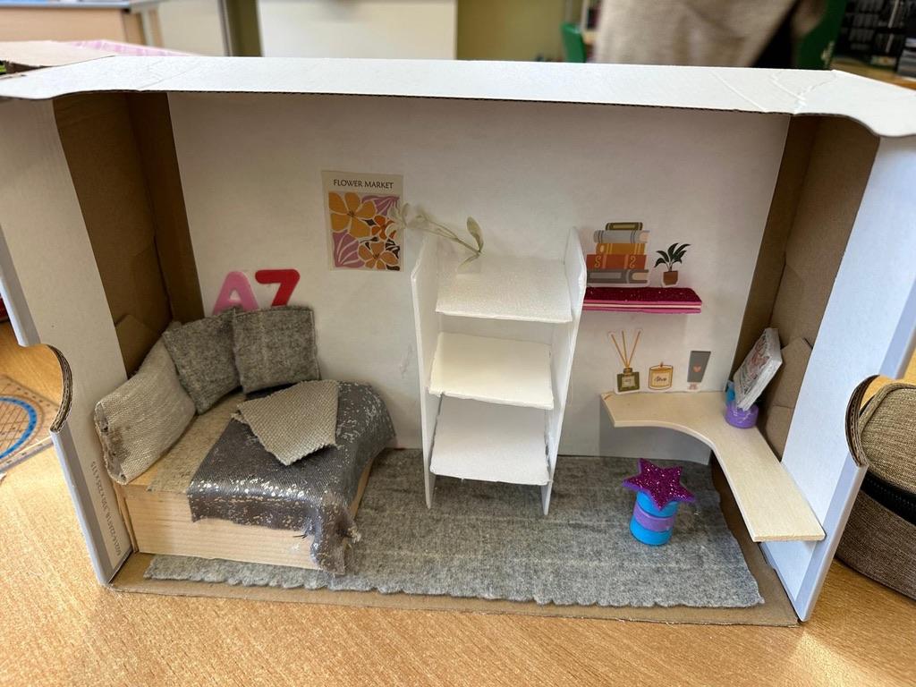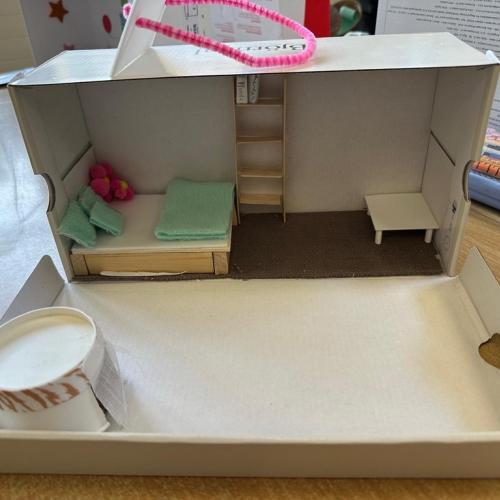 Die Kinder arbeiteten eifrig an ihren Ideen. Ihnen stand eine Menge unterschiedliche Materialien zur Verfügung. Verschiedenste Techniken wurden angewandt und kombiniert. Einige Kinder designten auch mit Tinkercad (Digitales Zeichenprogramm) Tische und diverse Einrichtungsgegenstände. Diese wurden dann mit dem 3D Drucker gedruckt.